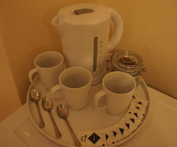 Room Facilities: Iron, Ironing Facilities, Fan, Heating, Carpeted Floor, Shower, Hairdryer, Bathroom Amenities, Toilet, Bathroom, Fax, Satellite TV, Cable TV, LCD /Plasma /Flat-screen TV, Tea/Coffee Maker, Refrigerator, Electric Kettle.